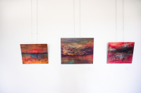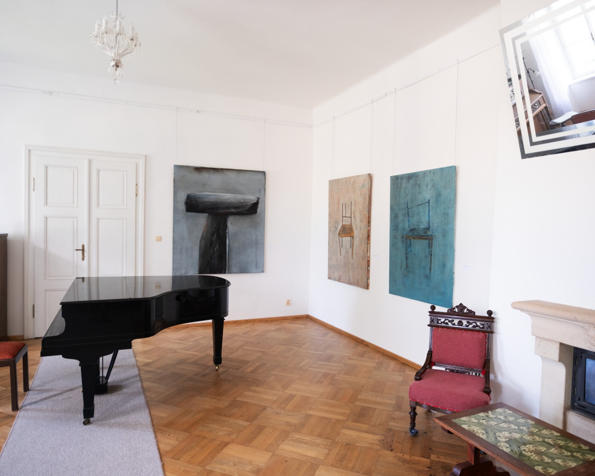Oldřich Tichý (*1959) je akademický malíř, držitel prestižní ceny The Pollock-Krasner Foundation. Jeho práce jsou zastoupeny ve sbírkách významných českých i zahraničních institucí. Po studiích na Střední uměleckoprůmyslové škole v Uherském Hradišti pracoval jako arteterapeut v Kroměříži, poté pokračoval na Akademii výtvarných umění v Praze v ateliéru Františka Jiroudka, kde rozvíjel svůj již předtím nalezený styl. Výrazným vlivem v tvorbě Oldřicha Tichého je venkov – ať už je to Valašsko, kde umělec vyrůstal, nebo Posázaví, kde se usadil po absolvování AVU v roce 1987 – rurální prostředí je jedním z hlavních inspiračních zdrojů jeho tvorby. Tichého malba balancuje na hranici abstrakce a figurace. Postavy, rostliny či objekty se v obrazech objevují, ale nikdy nejsou pevně zakotvené. Významnou roli v jeho tvorbě hraje podvědomí. Jeho obrazy často evokují zasněné krajiny nebo podivuhodné organické formy, které jako by se vynořovaly z mlhy paměti. Díla Oldřicha Tichého doplní ve velkém sálu v prvním patře a prostoru bývalé sladovny v přízemí zámku svými malbami jeho syn Matouš (*1989). Podobně jako u jeho otce je i jeho tvorba silně ovlivněna přírodou a prostředím venkova. Pracuje s motivy přírodních či a člověkem vytvořených artefaktů v monumentálních, ale přitom minimalistických kompozicích. Předměty vytržené z jejich přirozeného kontextu a zasazené do abstrahovaného prostoru barvy působí jako tiché otázky po původu, smyslu a trvání věcí.