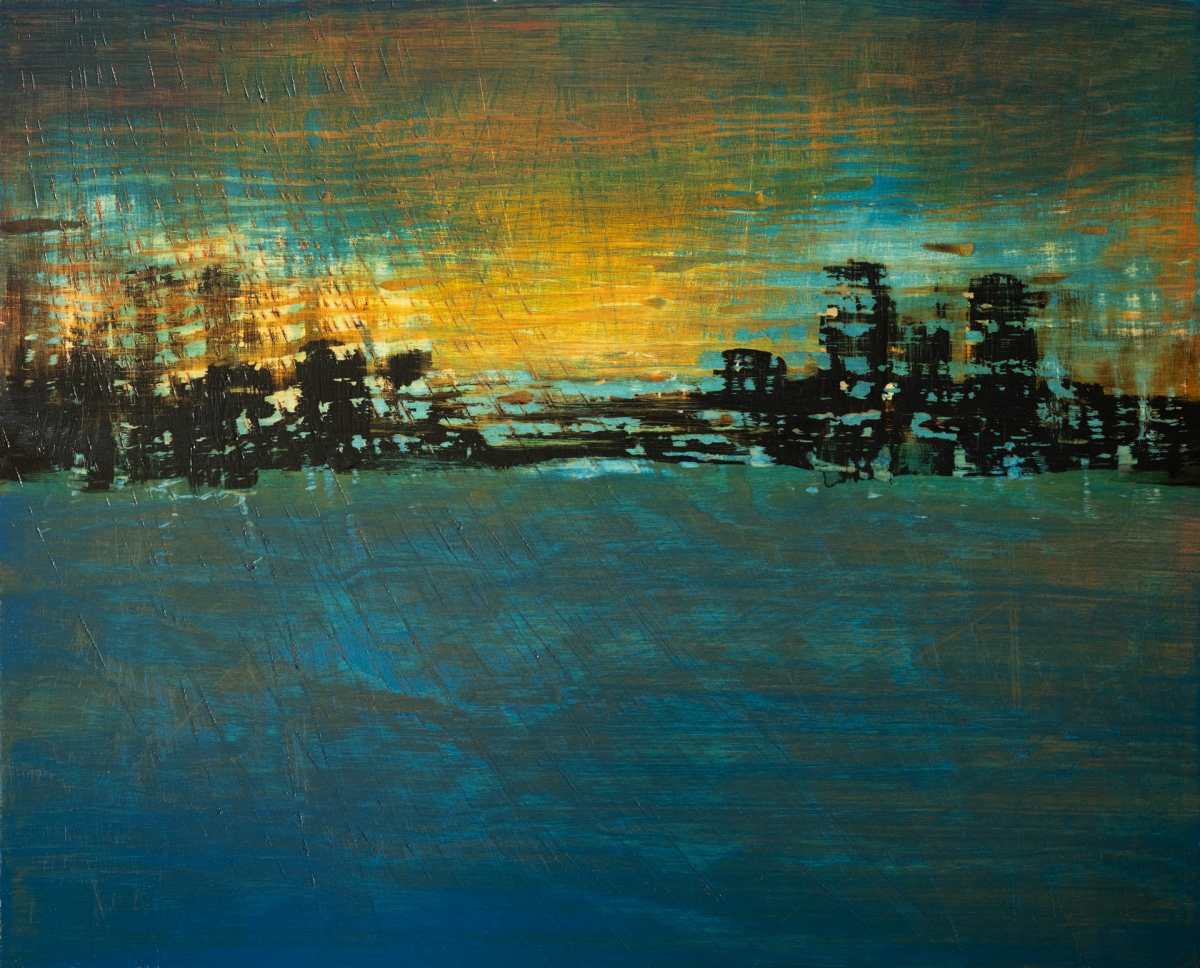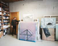 Anton Ehrenberger (*1953) vystudoval Vysokou školu uměleckoprůmyslovou ve Vídni v Meisterklasse profesora Herberta Tasquila a grafiku na Mezinárodní letní akademii v Salcburku u Rudolfa Hradila a Wernera Otteho. Byl učitelem výtvarné výchovy na středních školách v Kremži a lektorem na Vysoké škole pedagogické tamtéž. Vedle své umělecké a pedagogické činnosti působil Anton Ehrenberger po mnoho desetiletí také jako vedoucí ředitel regionálního muzea Zeitbrücke v Gars am Kamp. Díla Antona Ehrenbergera prezentovaná na kolektivní výstavě Flux přinášejí osobitý pohled na motiv plynutí. Latinské sloveso fluō (plynouti, řinouti se, směřovati) zde rezonuje jak v tematické rovině, tak v samotném projevu autorovy abstraktní malby. Ehrenberger čerpá inspiraci z vody jako živlu, ze vzpomínek na řeku Kamp protékající jeho domovským městem, ale také z prózy a poezie, v níž voda přestává být pouhou součástí přírody a stává se nositelem emocí, tužeb, napětí i katastrof. V obrazech, jako je cyklus Horní Kamp – Dojmy, autor mapuje své bezprostřední dojmy z řeky. Proud se v nich neustále proměňuje: není nikdy stejný, i když se zdá neochvějný. Tato nepolapitelná proměnlivost dává vzniknout malbám, jež jsou volnými překlady viděného, ale i hluboce cítěného. Ehrenberger vytváří své niterní krajiny, kde se konkrétní přírodní motivy setkávají s introspekcí a imaginací. Proud řeky zde přechází v proud vnitřního světa: vzpomínek, emocí a archetypálních obrazů. Literární inspirace sahá od dobrodružných a tajemných románů Julese Verna až do české baladické tradice. Erbenův Vodník se svou temnou lyrikou přináší do Ehrenbergerovy tvorby prvek napětí mezi krásou přírody a její destruktivní silou. Proud zde nenese pouze život, ale i záhubu. Rytmus balady, v němž se dcera řítí za svou povinností navzdory obavám a snům, nachází odraz v malbách, kde je každé gesto střetem mezi impulsem a reflexí. Voda jako symbol prahu, přechodu, možná i nenávratu, tak rezonuje nejen v motivu, ale i v samotné formě. Tvorba Antona Ehrenbergera je tak ve výstavě Flux projevem hlubokého souznění s plynutím – jak v přírodě, tak v člověku.