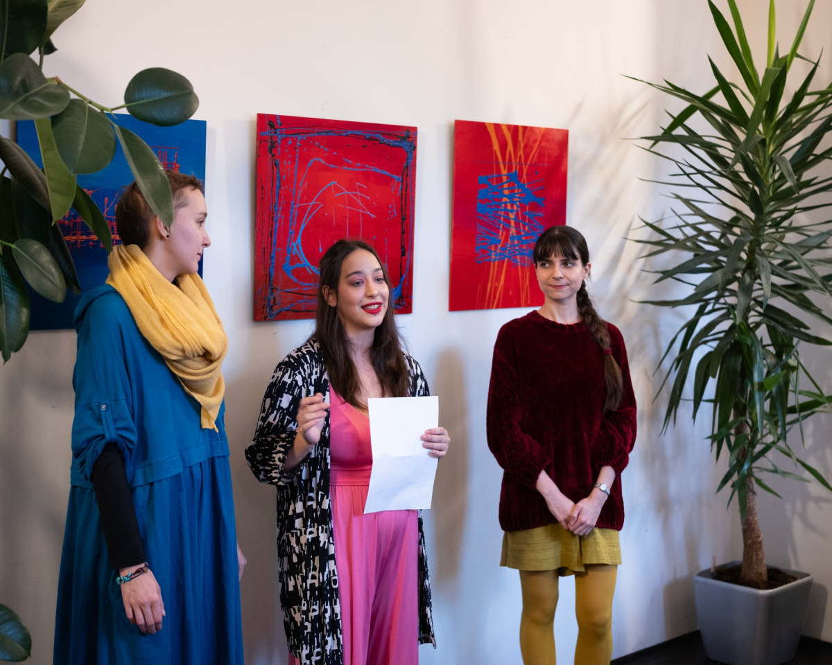Jana Hejdová, Agáta Kudláková a Eliška Ševcová. Společně jsme založily Artikulum jako studentky dějin umění s cílem uplatnit naše teoretické znalosti v kurátorské praxi. Od vzniku uskupení na podzim roku 2024 jsme připravily několik výstavních projektů a navázaly dlouhodobé spolupráce jak s výstavními prostory, tak se samotnými umělci.